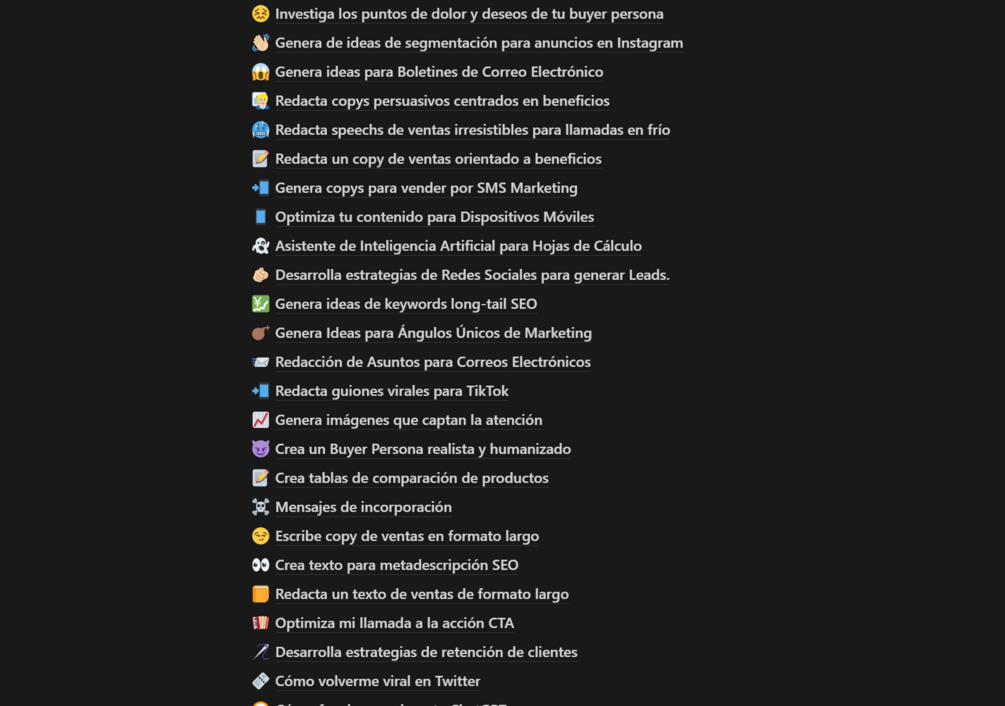 Me refiero a no tener que comenzar todas mis tareas de marketing desde cero, desde mi cabeza. Estos son los +100 prompts de ChatGPT que utilizo actualmente para obtener resultados de marketing que generan 1 millón de dólares. Ahora me sobra el tiempo. 📈⏳